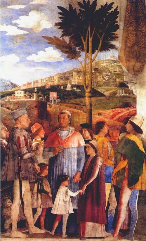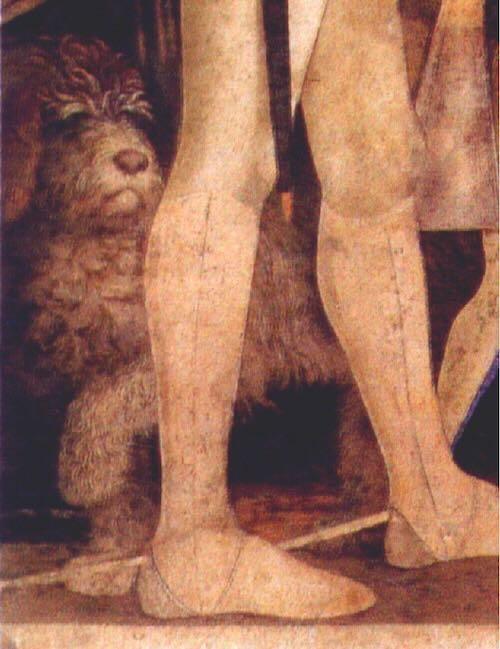 Na freskách ve Svatebním apartmánu Palazzo Ducale dei Gonzaga di Mantova, vytvořených Andreou Mantegnou v roce 1456, je ve scéně představující „setkání“, u nohou markýze Ludovica III. Gonzagy, pes, který je zřejmě totožný s dnešním Lagottem.